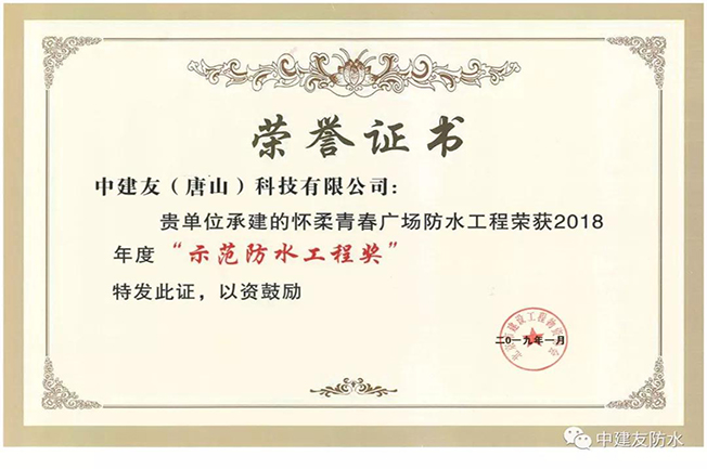 獲獎不是終點,而是起點。2019的鐘聲隨風而至,回首滿懷豪情萬丈,北京中建友防水公司將一如既往的秉承“服務于客戶,服務于社會,服務于防水事業(yè)”的經(jīng)營理念,竭誠為廣大新老客戶提供優(yōu)質服務!